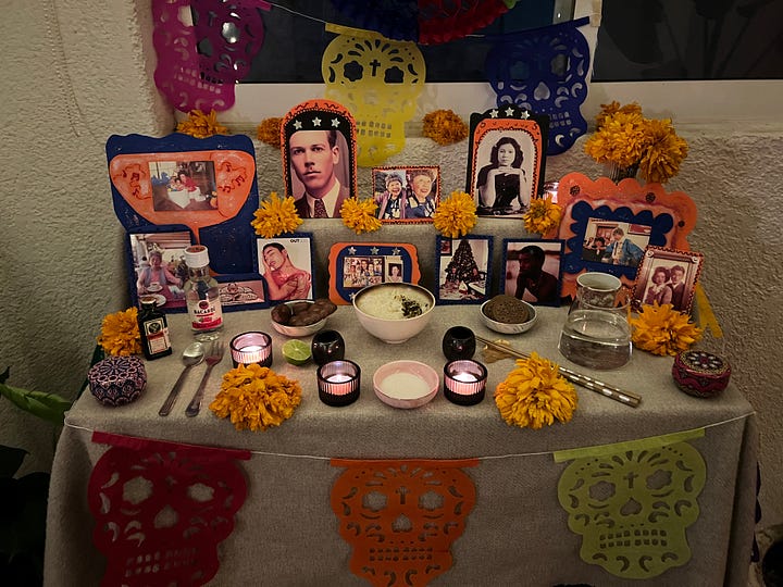 I added photos of E.T. to the altar my partner and I made for Dios de Los Muertos, alongside family members and friends who had passed in different years, some before I was born: my grandmothers, my grandfathers, uncles I had never met but heard many stories of, friends and family who had passed too soon—Moesi, Tomi, Lillian—too tragically, although to describe death like that makes me uneasy, for it assumes that the people who have passed on lost, that the living are the ones who continue to win. We lit candles, adorned the altar with favorite drinks and snacks, and surrounded their portraits with stained clumps of orange, the cempasuchil flower believed to act as a pathway for the dead, so as to offer them a chance to return, to enjoy, to embrace their loved ones. I like to believe in this idea, that the flowers are a path, that each and every person we honor returns as the best versions of themselves, new versions of themselves, unhindered by the expectations of a society or the limits of human life. My partner and I talked about each person we placed on the altar, what they enjoyed when they were here, what they might be doing upon their return. Who they might be growing into and all the ways in which they’ve evolved, no longer tied to the limits of the human mind, nor the distractions of the ego.